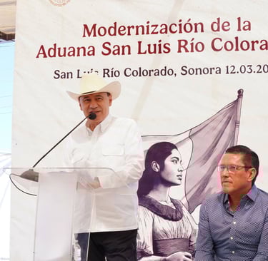 Con una inversión de alrededor de 400 millones de pesos y en beneficio de 600 mil habitantes de la región, el gobernador Alfonso Durazo Montaño arrancó la obra de modernización de la Aduana de San Luis Río Colorado I, proyecto que potenciará la economía del estado convirtiéndose en el nodo logístico comercial del noroeste del país. Crédito: Telemax