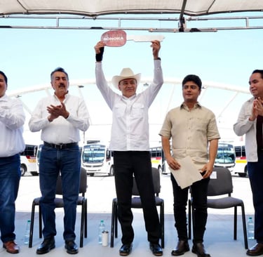 Gobernador Durazo refuerza transporte y salud en Cajeme con nuevos camiones y arranque de Semana Nacional de Vacunación