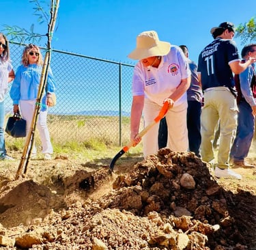 En el marco del Día Mundial de la Tierra, el Gobierno de la Ciudad de Nogales inició la primera etapa del programa “Ciudades Verdes, Ciudades Fuertes”, con la plantación de 12 árboles de sombra en el plantel Cobach Uno. Crédito: InfoNogales